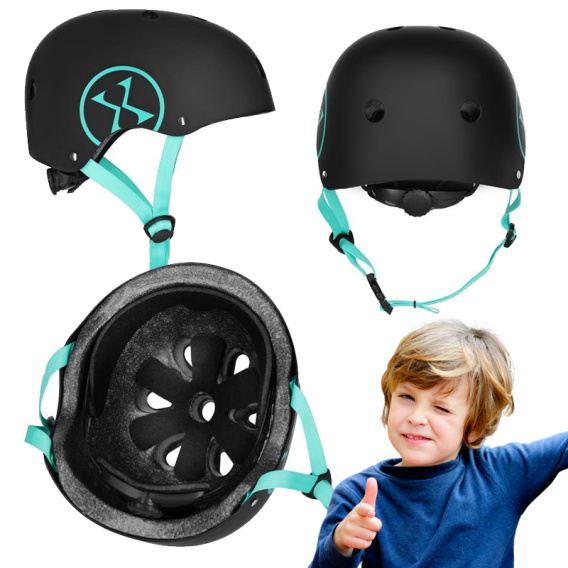 Bezpieczny Kask Czarno Niebieski Dla Dziecka Rozmiar M 55-58 CM ABS - EPS