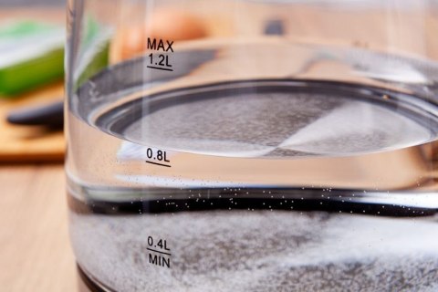 Na ściankach dzbanka znajduje się czytelna podziałka - wskaźnik maksymalnego i minimalnego poziomu wody.
