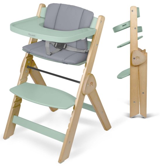Drewniane krzesełko do karmienia Timo Nukido składane regulowane - miętowe