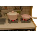Każdą z szafeczek można z łatwością otworzyć, nawet tę imitująca mikrofalówkę. Dziecko można więc udawać, że się coś podgrzewa, chowa w lodówce, a co najważniejsze może ukryć swoje kuchenne akcesoria.