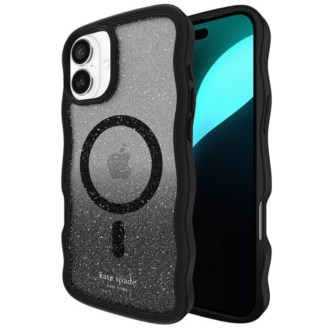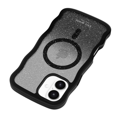 Etui Kate Spade New York Wavy MagSafe do iPhone 16 Plus to stylowe połączenie funkcjonalności i modnego designu. Jego unikalny falisty wzór, pokryty eleganckim czarnym brokatowym ombre, nadaje Twojemu telefonowi wyjątkowy wygląd, który doskonale sprawdzi się podczas robienia selfie w lustrze.