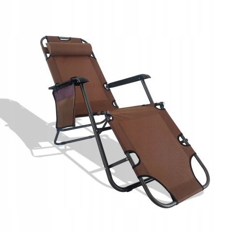 Leżak rozkładany z podnóżkiem i organizerem bocznym, PEACE brązowy
