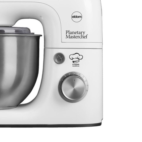 5- litrowa misa urządzenia wykonana jest ze stali szlachetnej INOX. Robot pracuje na 8 różnych prędkościach, a także w trybie pulsacyjnym. Jego mocny i wytrzymały silnik gwarantuje brak przykrych niespodzianek w najmniej oczekiwanym momencie.