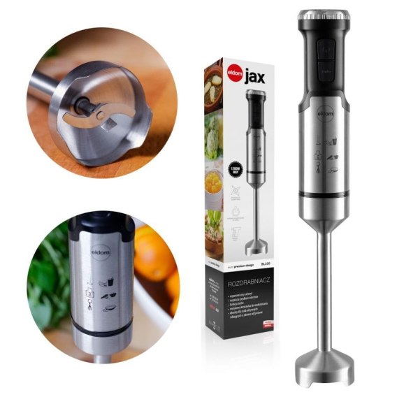 Eldom BL230 JAX – moc 1000W, 12 prędkości i funkcja Turbo. Metalowa końcówka, stalowe ostrza i ergonomiczny uchwyt. Idealny do zup, sosów i smoothie. 🍲🥤