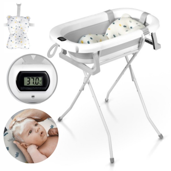 Wanienka składana dla dzieci, niemowląt ze stelażem, termometrem i wkładką Ricokids RK-287 biało-szara