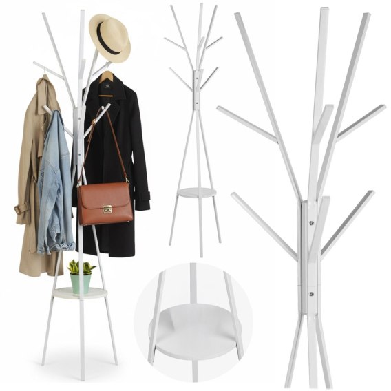 Wieszak stojący metalowy biały z półką 181 cm biały Massido przedpokój