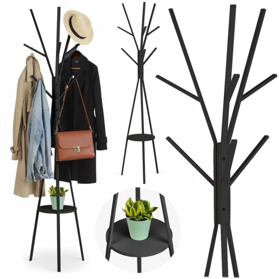 Wieszak stojący metalowy czarny z półką 181 cm czarny Massido przedpokój