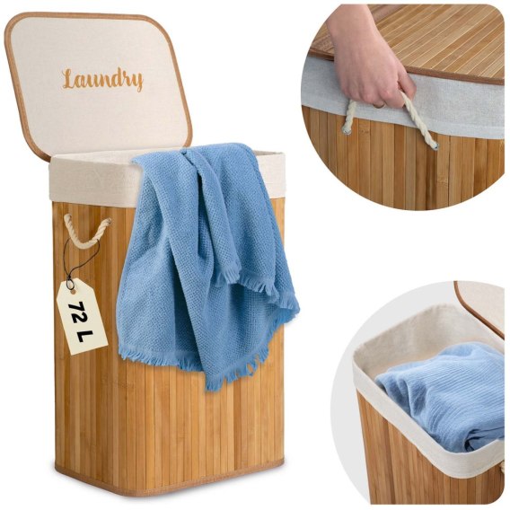 • Bambusowy kosz na pranie bieliznę z pokrywą 72 l Massido
