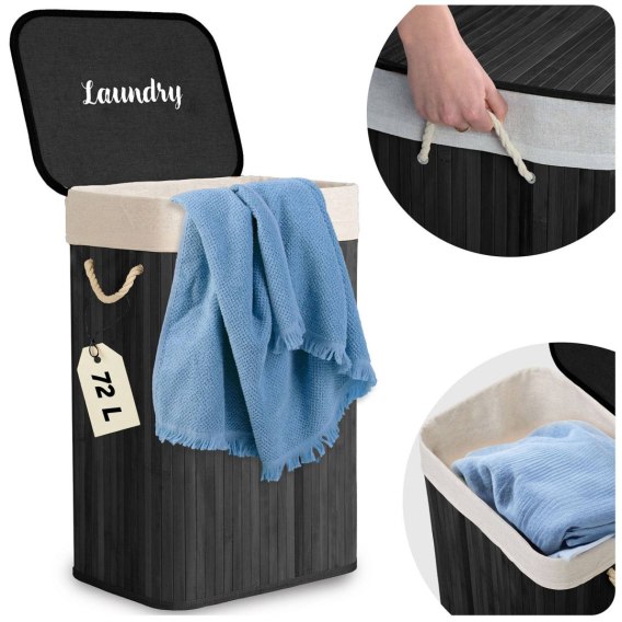 Bambusowy kosz na pranie bieliznę z pokrywą 72 l Massido