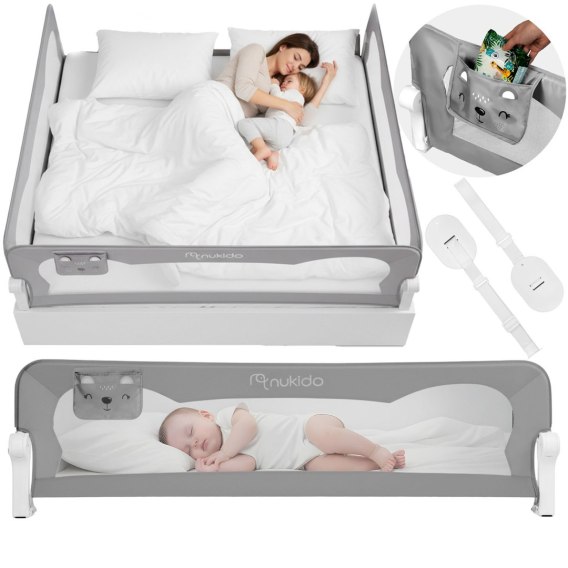 Barierka ochronna do łóżka zabezpieczająca bramka blokada 200 cm Nukido szara