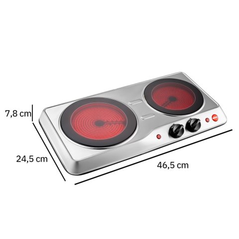 Kuchenka jest bardzo prosta w obsłudze i łatwa w czyszczeniu. Wysokiej jakości ceramiczne płyty grzejne są odporne na uszkodzenia, a obudowa została wykonana ze stali nierdzewnej.