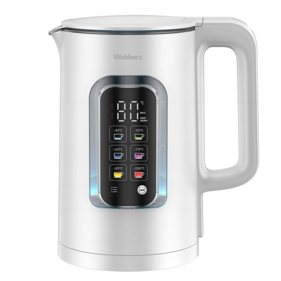 Czajnik Webber wyposażony jest w inteligentną funkcję Keep Warm, która utrzymuje wybraną temperaturę wody nawet do 12 godzin (z tolerancją ±5°C).