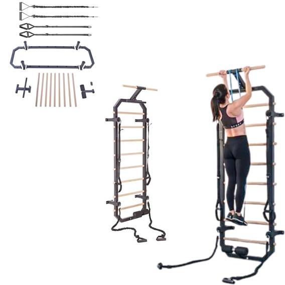 DW2708 HMS – stalowo-drewniana drabinka 223 cm z gumami i taśmami. Trening siły, gibkości i kondycji w Twoim domu! 🏋️♂️