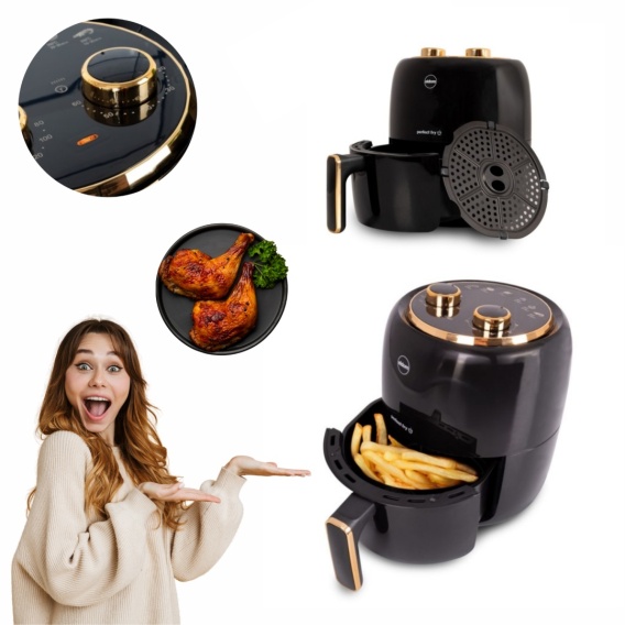Chrupiące frytki, delikatny kurczak i pyszne warzywa – wszystko bez oleju! Frytkownica ELDOM FR35 to kompaktowe urządzenie, które pozwala smażyć, piec i grillować przy użyciu gorącego powietrza zamiast tłuszczu. Dzięki technologii cyrkulacji 360° przygotujesz posiłek szybciej, zdrowiej i bez bałaganu.