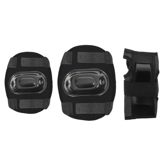 Zestaw ochraniaczy na nadgarstki, łokcie i kolana. Wykonany z wysokiej jakości materiałów. Skorupa zaprojektowana z mocnego i lekkiego tworzywa. Wszystkie ochraniacze wyposażone są w zapięcie na rzepy, dzięki czemu utrzymują ochraniacze we właściwym miejscu. Zaprojektowane tak, aby użytkownik czuł się komfortowo i w maksymalnym stopniu zabezpieczał nadgarstki, łokcie i kolana przed urazami.