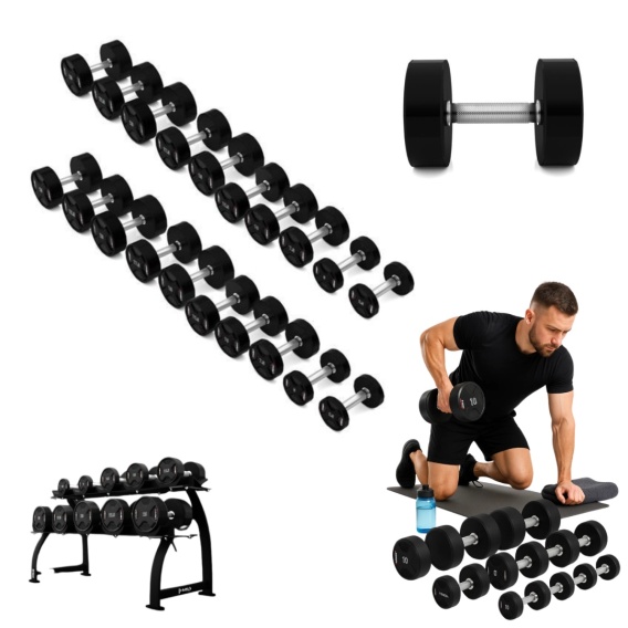 HPC SET HMS – profesjonalny zestaw hantli poliuretanowych CPU od 2,5 do 25 kg. Trwałość i komfort treningu! 🏋️♂️🔥