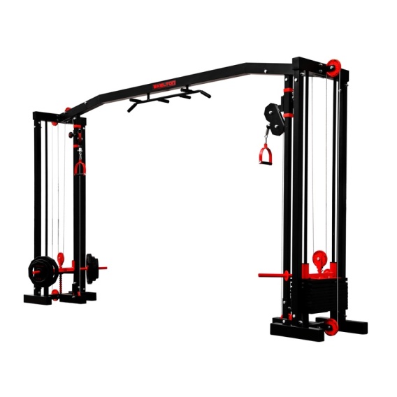 Rozwiązania z profesjonalnej bramy w Twojej domowej siłce!|Myślałeś, że nigdy nie kupisz sobie bramy takiej jak na profesjonalnych siłowniach? Już dziś możesz mieć u siebie w siłce swoją „prywatną" bramę. Czy wiesz ile ćwiczeń możesz na niej zrobić?|Co świadczy o profesjonalnym sprzęcie?|Przede wszystkim niezniszczalna konstrukcja. Tej bramy nie ruszy 250 KILOGRAMÓW! Zbudowaliśmy ją z wytrzymałego profilu 80x60 ze ścianką o grubości 2 mm. Tej samej stali używamy do produkcji maszyn z serii profesjonalnej! Podejmij walkę, wymęcz się do granic możliwości z 250 KILOGRAMAMI ciężaru, pokaż kumplom na co Cię stać!|Potężne podstawy bramy gwarantują jej stabilność i dadzą Ci poczucie bezpieczeństwa. Wykonaliśmy ten sprzęt głównie po to, abyś mógł w dobrej cenie wyposażyć swoją domową siłkę w maszynę z profesjonalnymi rozwiązaniami.|Zgadnij jak przenieśliśmy rozwiązania z profesjonalnych maszyn do Twojej bramy HM1?|Na pewno doskonale znasz to uczucie, gdy ciężar na bramie podczas treningu nie jest prowadzony równomiernie i cały czas irytuje Cię jego przeskakiwanie. Dzięki temu, że oparliśmy nasz system prowadzenia ciężaru na rozwiązaniu z profesjonalnych maszyn, czyli na stosie z dwoma okrągłymi profilami już dziś możesz zapomnieć o tym problemie. Poczujesz jak ciężar idealnie suwa się po prowadnicach, zaznasz komfortu z profesjonalnej siłki, będziesz mógł skupić się na technice wykonywania treningu a nie kombinacjach co zrobić z przeskakującym ciężarem. Ty myśl o treningach, my myślimy o sprzęcie!|Porządnie zrobiona rozgrzewka na drążku.|Na pewno wiesz, że podstawą dobrego treningu jest porządna rozgrzewka. Bramę wyposażyliśmy w drążek z 6 grubymi rączkami. Dzięki temu możesz ćwiczyć na nim trzema rodzajami chwytów: wąskim, szerszym i najszerszym.|Masz wybór: wolne ciężary lub stos.|Chcemy jak najlepiej dostosować się do Twoich potrzeb. Dlatego też w naszej bramie to Ty wybierasz czy chcesz trenować z wolnymi ciężarami czy z ciężarami na stosie. Dzięki wymiennemu modułowi na ciężary dostosujesz ten sprzęt idealnie do swoich potrzeb.|Z czasem, gdy nabierzesz coraz większej masy będziesz potrzebował większego obciążenia. W tej bramie zarówno wolne ciężary jak i na stosie możesz dowolnie modyfikować. Jeśli masz już w swojej siłce jakieś ciężary to wystarczy dokupić bramę i możesz oszczędzić więcej pieniędzy.|Dokup tuleję na obciążenie fi 50 mm|Niczym nie ograniczony ruch z drążkiem.|Zdradzę Ci sekret tego sprzętu, dzięki któremu będziesz mógł ćwiczyć mięśnie pod różnymi kątami i nie czuć ograniczeń w wykonywaniu ćwiczeń. Sposoby w jakie możesz regulować ustawienie drążka gwarantują Ci że:|1. Masz nieograniczony ruch.|W każdej innej bramie linka prowadzona jest z górnej części stosu przez co znacznie zmniejsza Twoje pole ruchu w przód i w tył. My w naszej bramie zamontowaliśmy ruchome kółko, które powoduje, że podczas ćwiczeń z krzyżowaniem linek nic nie będzie Cię ograniczać. Będziesz miał pełny zakres ruchu.|2. Nie musisz przekładać drążka.|Utrudnieniem podczas treningów na bramach innych producentów jest to, że za każdym razem musisz przepinać drążek pomiędzy ułożeniem dolnym i górnym. Dzięki prowadzeniu drążka po profilu w naszej bramie przepinasz drążek w momencie kiedy musisz zmienić jego rodzaj. Gdy chcesz zmienić jego wysokość wystarczy, że odkręcisz pokrętło i przesuniesz go po profilu w górę lub w dół. Dzięki takiej niczym nie ograniczonej regulacji wysokości możesz ćwiczyć mięśnie pod każdym kątem, co sprawia, że szybciej nabiorą masy i rzeźby.|Wykonasz na niej ćwiczenia na wszystkie partie mięśni.|W tak atrakcyjnej cenie możesz ćwiczyć klatę, grzbiet, nogi, brzuch i ramiona. Zwiększać STALOWĄ rzeźbę i wypukłość mięśni z dnia na dzień. W tabeli poniżej znajduję się spis 18 podstawowych ćwiczeń, które możesz wykonać na tej bramie. Jeśli masz problem w doborze ćwiczeń lub sprzętu zawsze możesz się z nami skontaktować, a nasze konsultantki doradzą Ci jak rozpocząć trening lub urządzić siłkę.|Patent na linki bramy - przedłużamy jej wytrzymałość na przetarcie!|Z tą bramą kupujesz grube, plastikowe, solidne ze stalowymi łożyskami kółka, wykonane według naszego projektu. Przedłużą one wytrzymałość linek bramy na przetarcie. Nie dajemy pierwszej lepszej linki, dostajesz od nas linkę o grubości 4 mm w osłonie PCV, dzięki temu nie będziesz musiał jej tak często wymieniać i zaoszczędzisz kasę na kolejne zakupy! Głębokie rowki sprawiają, że linka dobrze się prowadzi i nie wypada z kółka.|Dodatkowo w systemach mocowania drążków zamontowaliśmy grube, gumowe kule z metalowymi nakładkami, które amortyzują drążek i zapobiegają jego obijaniu.|Na tej bramie nie musisz ćwiczyć tylko drążkami na jedną rękę HD6 możesz je wymieniać w prosty i szybki sposób. Tylko dzięki urozmaiconym treningom staniesz się wzorem rzeźby dla kumpli!|Myślałeś, że takiego sprzętu nie ma na rynku w takiej cenie? Już dziś możesz mieć bramę stworzoną w oparciu o pasję i doświadczenie w projektowaniu profesjonalnego sprzętu. Wyposażoną w system regulacji drążków, który w żaden sposób nie będzie Cię ograniczał. Zacznij trenować wszystkie partie ciała od dziś z maszyną Kelton HEAVY HM1.|Gabaryty|(szerokość x wysokość x głębokość) 400 cm x 205 cm x 85 cm|Waga 100 kg (bez obciążenia na stosie)|Testowana wytrzymałość 250 kg|Profil konstrukcyjny 80x60x2 mm, 50x50x2 mm|Szerokość podstawy 400 cm|Głębokość podstawy 85 cm|Ciężar na stosie w komplecie Nie|Możliwość treningu z obciążeniem na stosie / wolny ciężar|Możliwa ilość ciężaru na stosie 15 sztuk (sztaba 7,5 kg)|Długość pręta na obciążenie 20 cm|Średnica pręta na obciążenie 25 m