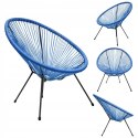 Niebieskie siedzisko zelastycznego rattanu PE i czarne, metalowe nogi tworzą idealne połączenie stylu i trwałości. Pasuje zarówno do nowoczesnych, loftowych, jak i boho aranżacji.