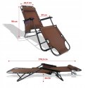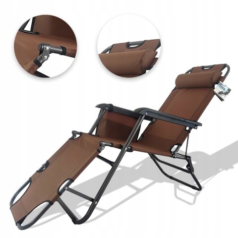 Leżak rozkładany z podnóżkiem i organizerem bocznym, PEACE brązowy