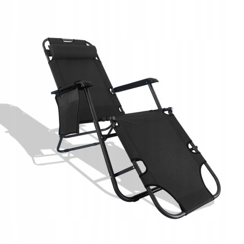 Leżak rozkładany z podnóżkiem i organizerem bocznym, PEACE czarny