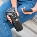 Kubek termiczny NCC06 marki Nils Camp cechuje zarówno prosta konstrukcja jak i oryginalny design! NCC06 to kubek termiczny, który wykonany jest ze stali nierdzewnej o podwójnej ściance, dzięki czemu gwarantuje utrzymanie temperatury ciepłych napoi przez 12 godzin, a zimnych przez 24 godziny. Kubek termiczny NCC06 posiada innowacyjny system otwierania. Aby móc się napić, należy wcisnąć i trzymać przycisk - wtedy blokada otworu się zwalnia. Natomiast, żeby zablokować otwór, wystarczy zwolnić przycisk. Kubek posiada również tłoczenia w części chwytnej, co ułatwia jego trzymanie i zwiększa bezpieczeństwo podczas przemieszczania się. Dużym atutem jest również to, że dolna część kubka posiada antypoślizgową gumę, co zwiększa bezpieczeństwo przed rozlaniem gorącej kawy czy herbaty podczas gdy kubek jest otwarty!