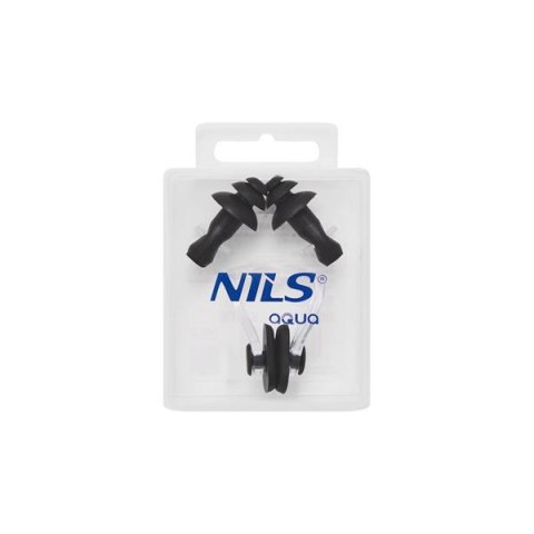 NQAW30 CZARNY ZESTAW PŁYWACKI SILIKONOWE ZATYCZKI DO USZU I NA NOS NILS AQUA