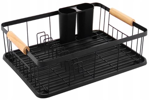 Suszarka do naczyń ociekacz na talerze + pojemnik na sztućce czarna metal XL