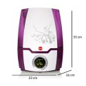 Czytelny i duży wyświetlacz przedstawia stan pracy urządzenia i aktualny poziom wilgotności w pomieszczeniu. Wielokolorowe podświetlenie wyświetlacza sprawia, że pracujący nawilżacz wygląda niezwykle efektownie
